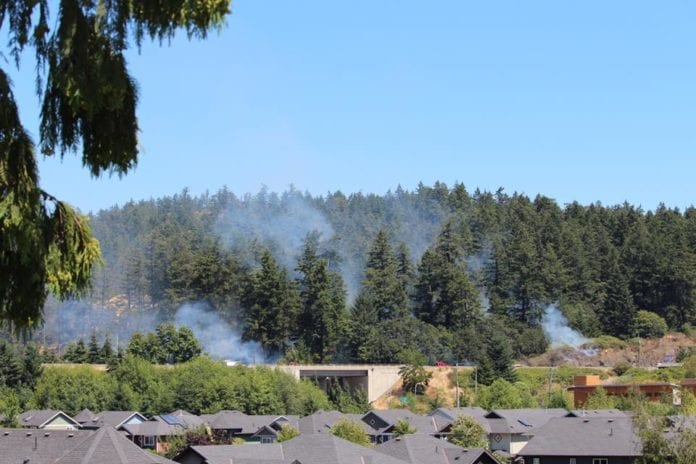 The 6 Mile exit fires merged into one covering about a hectare in size. View Royal, Colwood and Capital Regional District firefighters battled that blaze, while Langford fire crew dealt with the third fire.