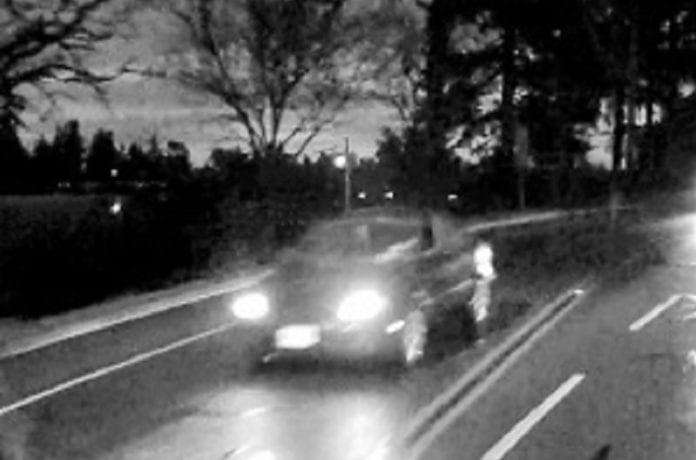 The vehicle is described as a dark coloured, four-door sedan. Mounties are hoping to speak to the operator of the car.