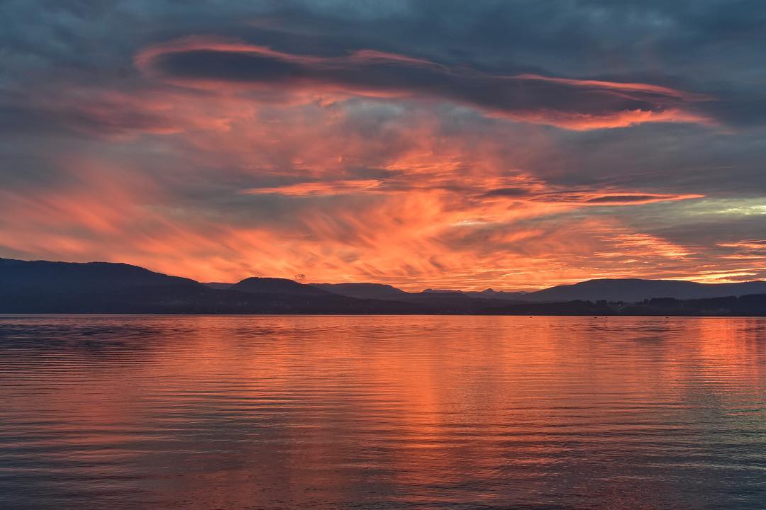 Last night, a series of spectacular cloud formations coincided with the sunset to create what looked like giant rings of fire in the sky.