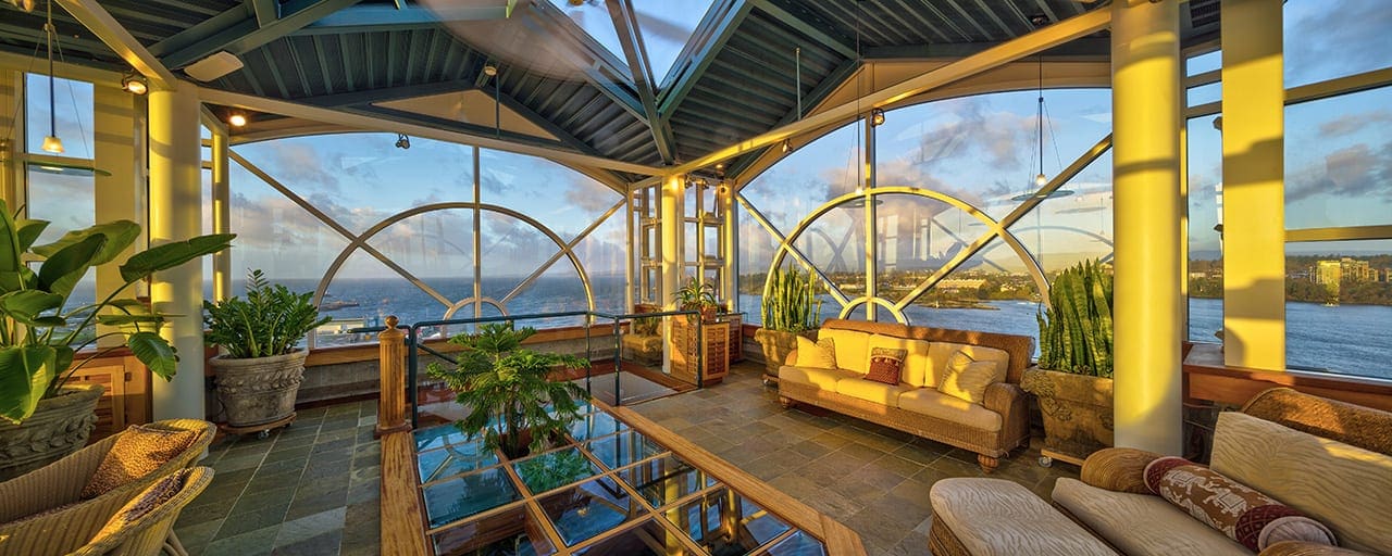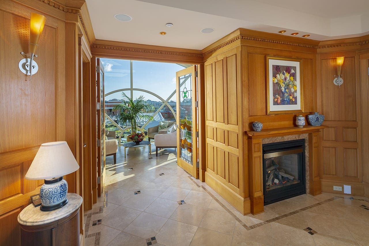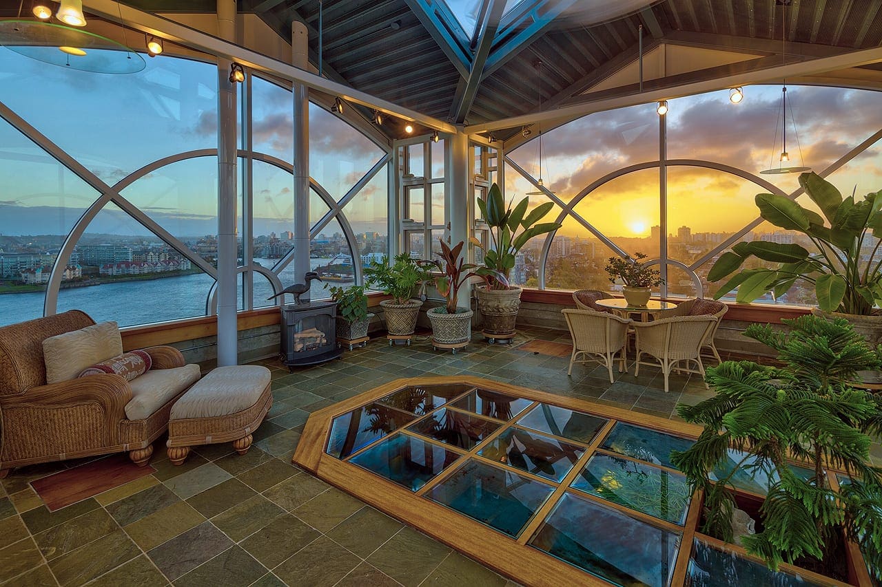 One of the most unique features of this home, however, is the private rooftop conservatory which is home to a fireplace, a fish pond, and abundant plant life and foliage.