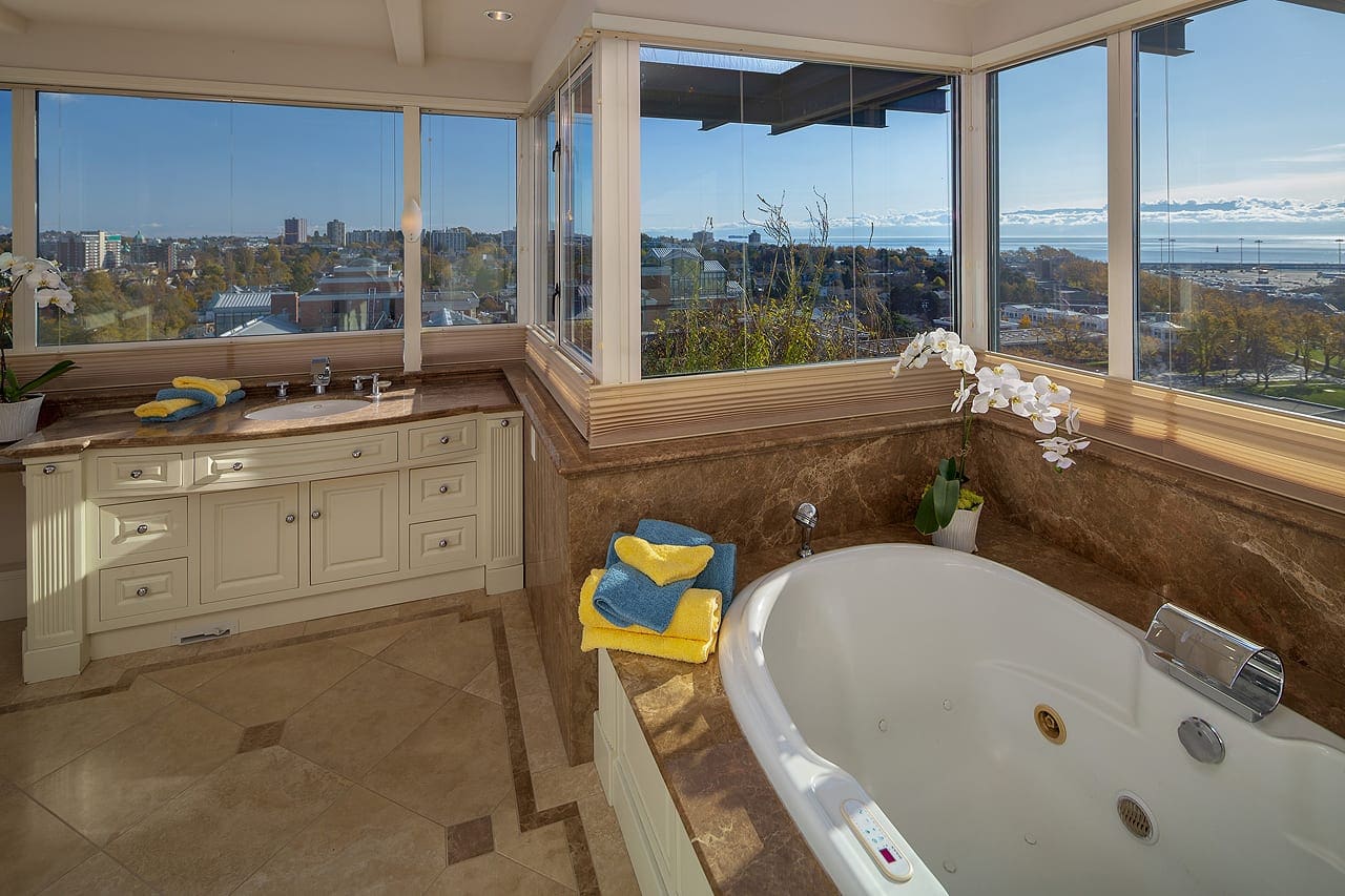 Located atop Shoal Point’s tallest tower, Victoria’s most expensive penthouse is 4,810 sq ft, has 2 bedrooms, 4 bathrooms and boasts stunning harbour views through floor-to-ceiling windows.