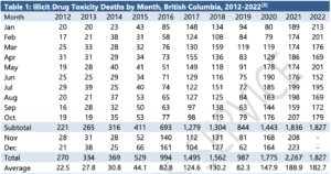 These last 179 deaths are consistent with previous reporting throughout the first 10 months of 2022. An average of 182 people die every month from the toxic drug supply that is plaguing BC.