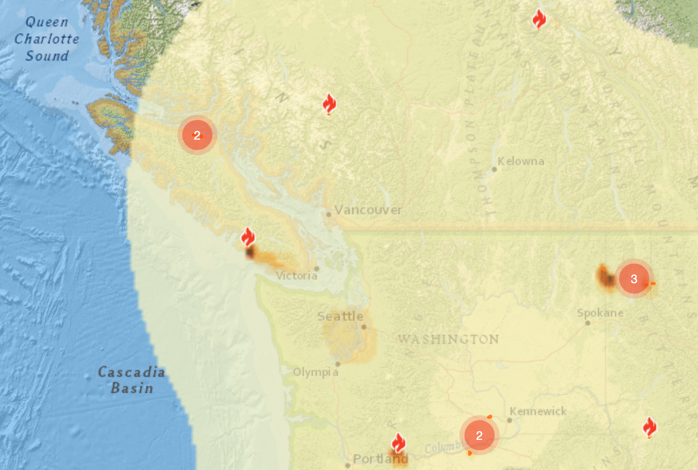 At the time of this publication, there are 103 active wildfires in BC and several large wildfires close to the BC/Washington border.