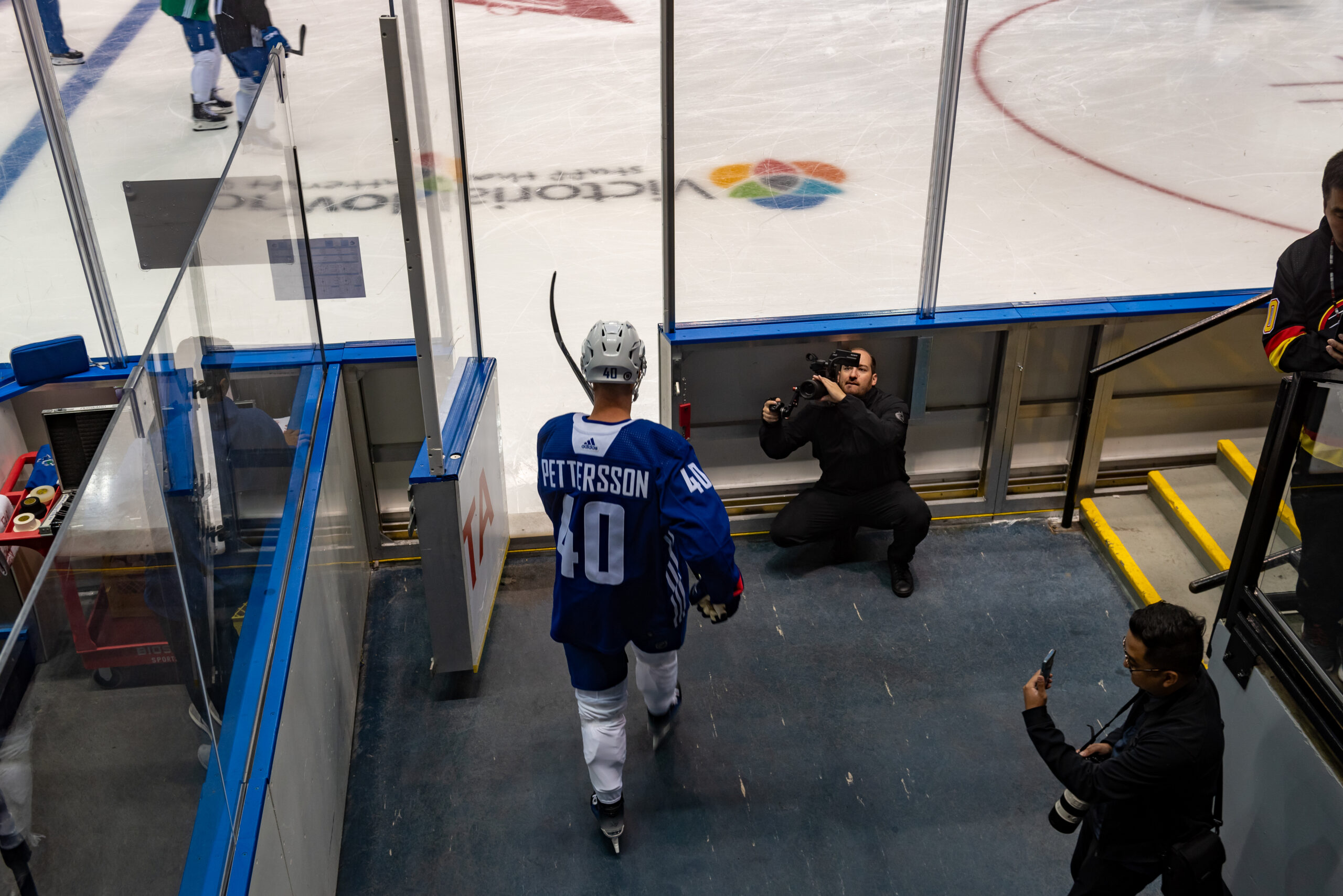 This young (and seemingly happy) enthusiast had completed the Canucks fan trifecta: jersey, hat, puck.