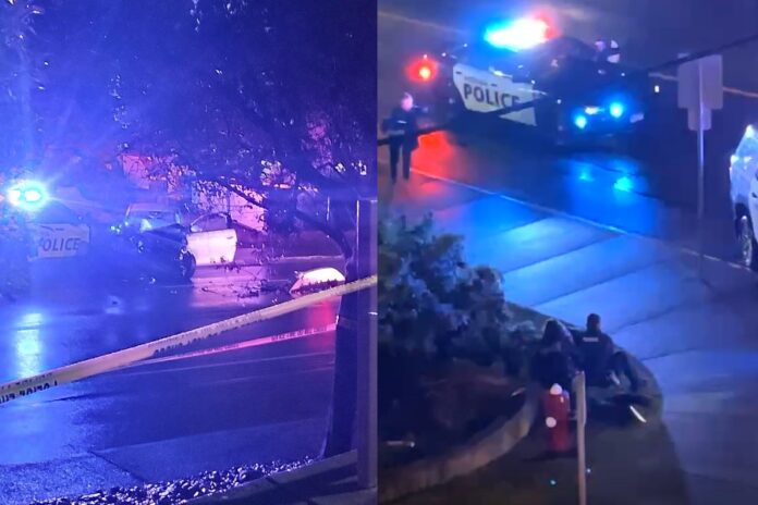 At around 9:45 p.m., on Oak Street in Saanich, two VicPD vehicles purposely made contact with the suspect’s car, successfully disabling it.