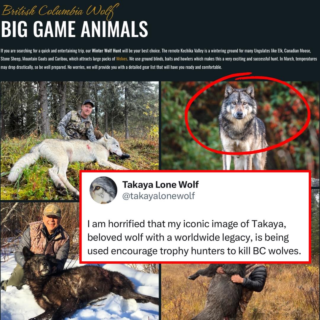 The most recent grievance for Alexander, and those who followed the Takaya story, was the use of an image she took of the wolf on a BC-based trophy hunting guide’s website.
