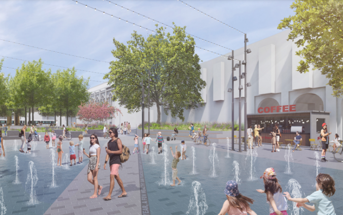 The City says new features for the square will include a large splash park with integrated sound and lighting elements.
