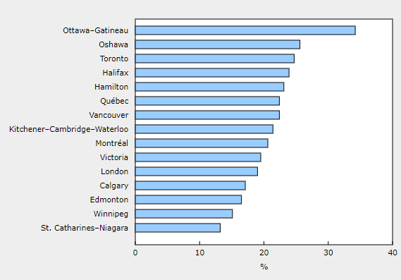 Halifax was next in line with 12.3%riding or walking. StatCan says this may potentially be driven by the smaller size and milder climate of these cities.