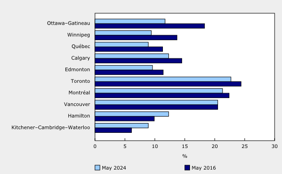 StatCan says that on the whole, commuters who mainly take active transportation have remained essentially unchanged since 2021, with 6.0% of commuters walking or biking to work in May 2024.