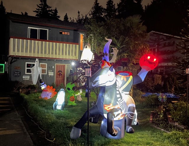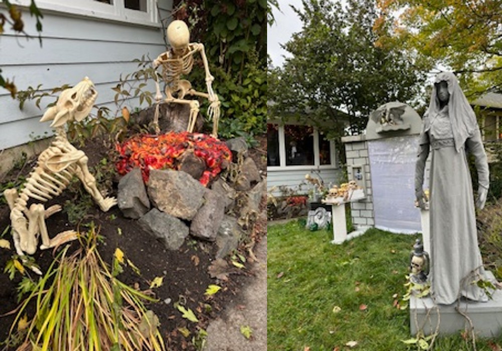 Residents across Greater Victoria have taken it upon themselves to adorn their houses with all manors of scary things, including gravestones, cobwebs, goblins, skeletons, blood and caution tape.
