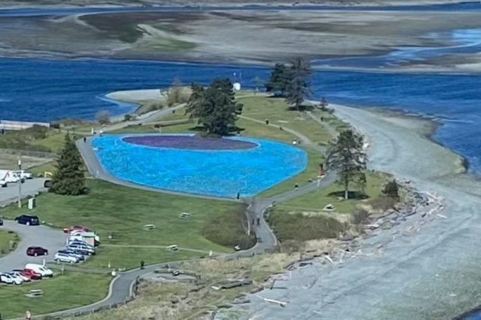 If you’ve passed by Tyee Spit in Campbell River recently, you may have noticed an overwhelming sight—tens of thousands of tiny flags blanketing the grass.