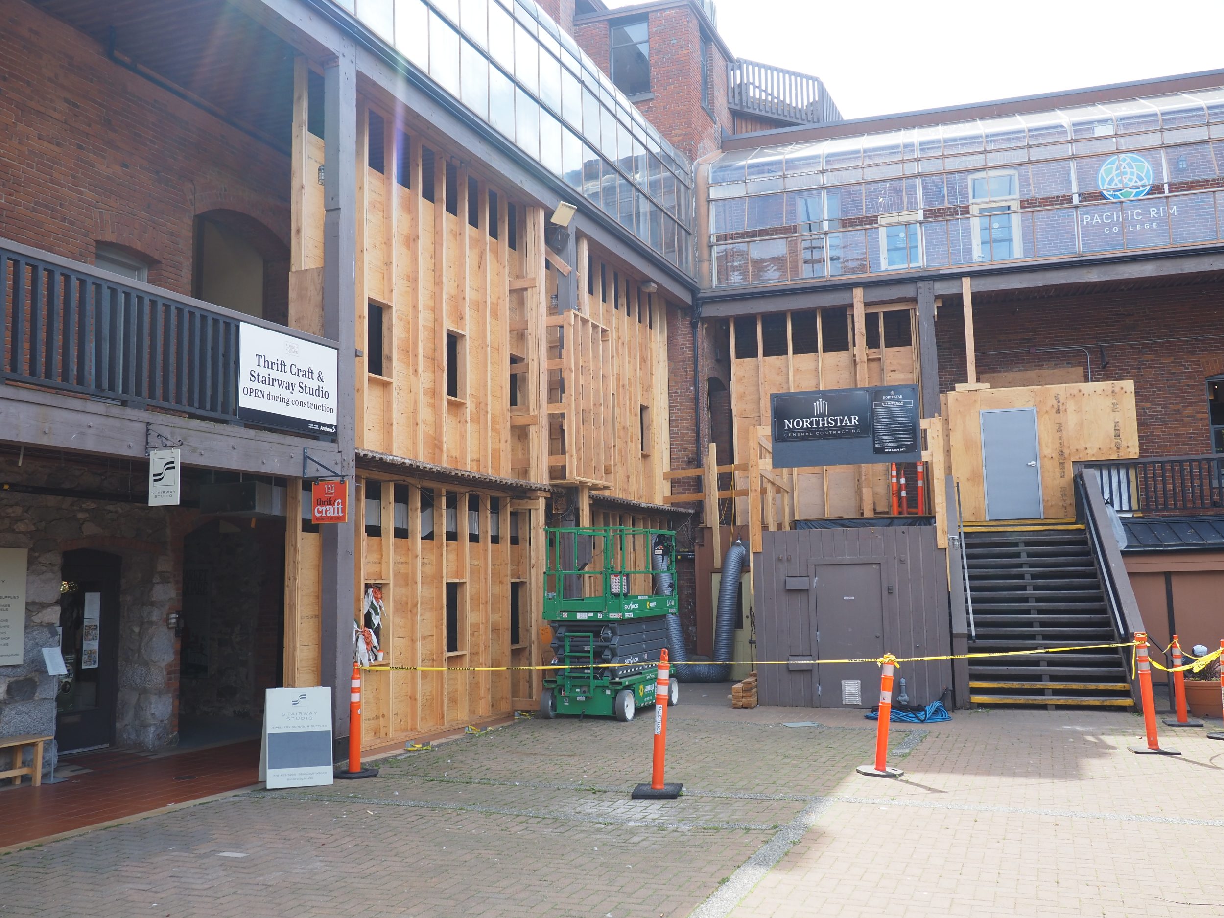 While working on this renovation, rotted beams were discovered and the completion date was pushed back from June to August. It was around May when the temporary wall was erected in front of Thrift/Craft.