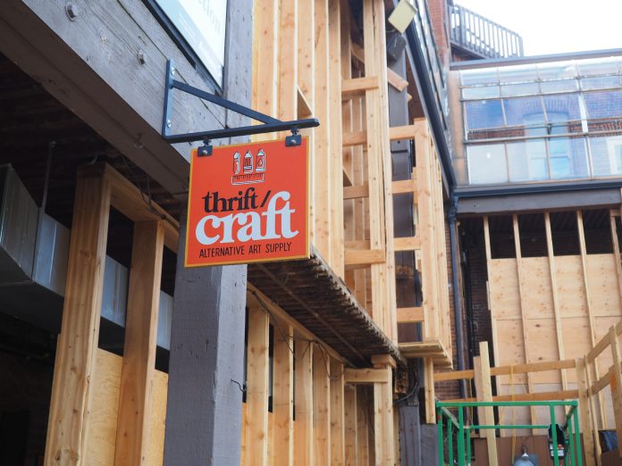Thrift/Craft is located on the lower level of Market Square, currently tucked behind the temporary wall on the southwest corner of the square.