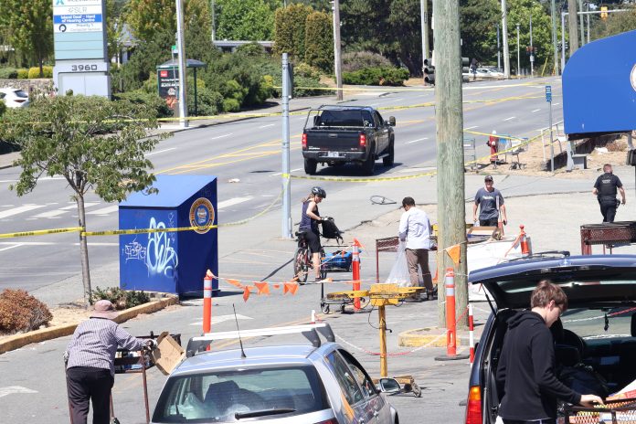 Emergency crews were called to the intersection of Quadra Street and Greenridge Crescent, near the Lochside Trail crossing, at around 11:45 a.m. on July 28th.
