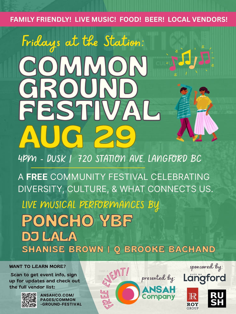 The Common Ground Festival will be taking over Langford Station on Friday, August 29th from 4 p.m. to 9 p.m., and is a free, all-ages event.