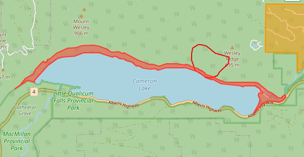 Though the blaze is in close proximity to Highway 4, being just across the lake from the corridor, BCWS says that the highway has not yet been affected directly.
