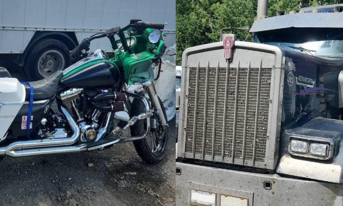 The accident occurred around 12:34 a.m. on July 24th. Police say a black Kenworth semi-truck collided with a black Harley Davidson motorcycle near Naver Creek Road.