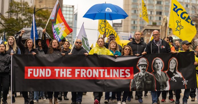 The “Fund the Frontlines” march will begin at Centennial Square at 11 a.m., travelling down Blanshard Street before concluding with a noon rally on the Legislature lawn.