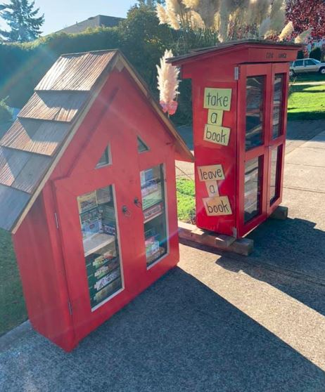 These treasure troves of giving come in all shapes and sizes, with most containing books; however, there are many that share plants, seeds, toys, yarn, household items, board games, puzzles, art supplies, art, food and more.