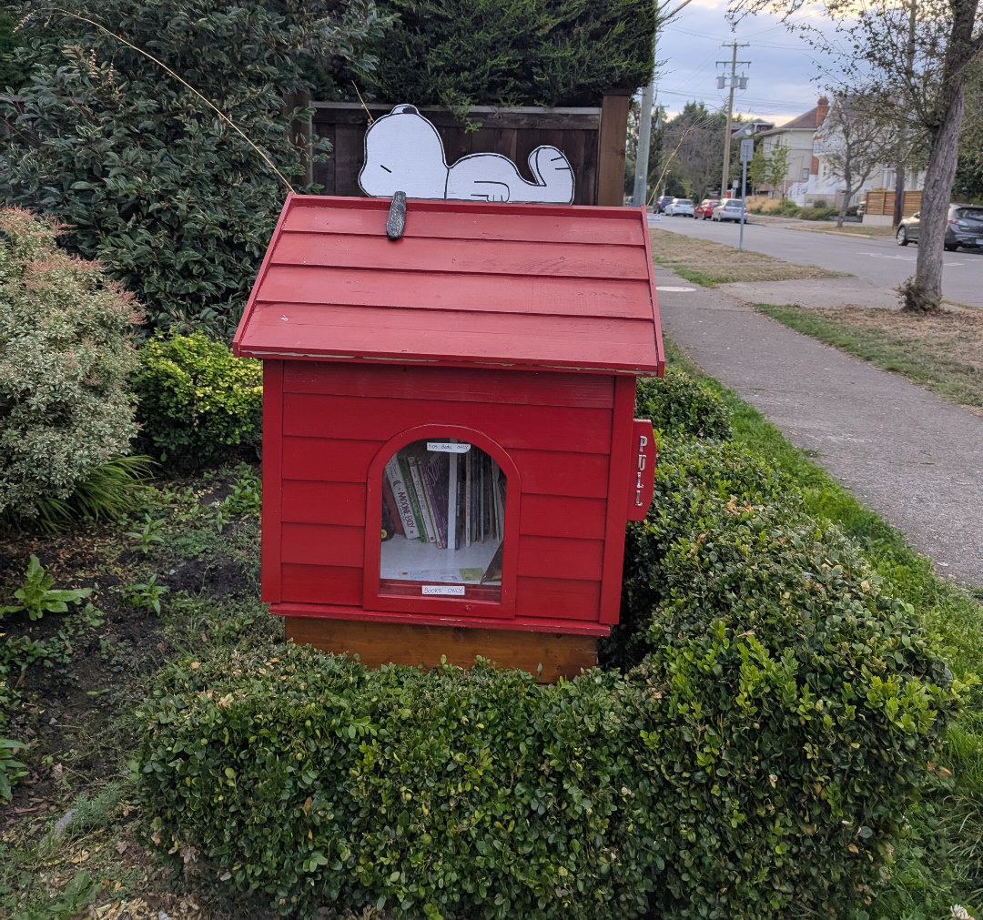 Cutest LFL: Snoopy LFL – found on the 1200-block of Richardson Street in Victoria. One of at least four Peanuts-themed LFLs in the region, with day dreaming Snoopy on its roof.