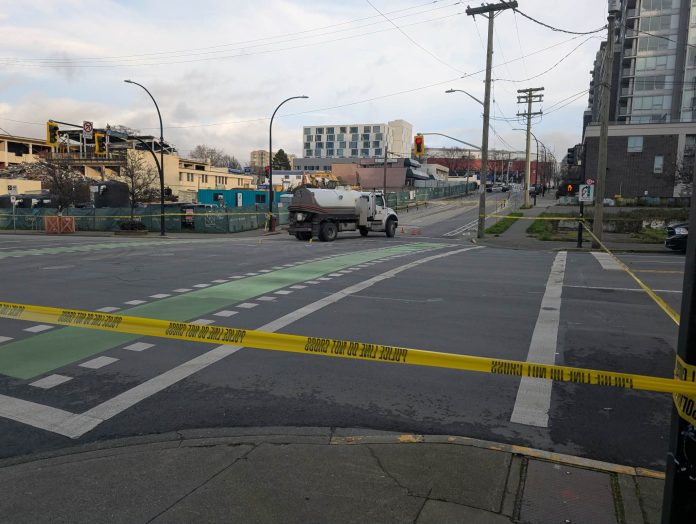 The collision has forced the closure of a key route used by drivers travelling into and out of downtown Victoria, causing traffic disruptions in the area.