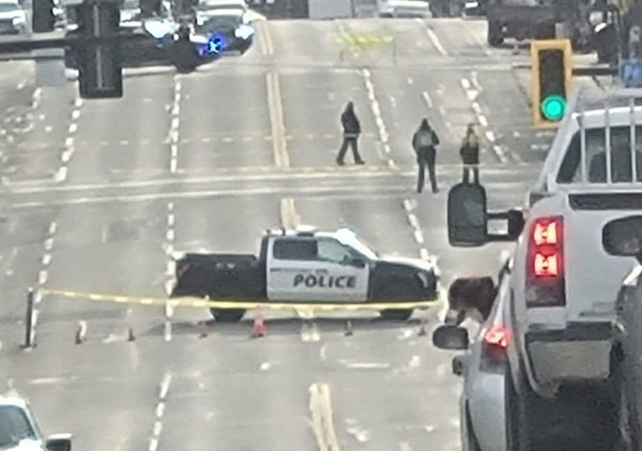 A pedestrian has been seriously injured following a crash at a downtown Victoria intersection, prompting the closure of a major roadway in and out of the city Friday.