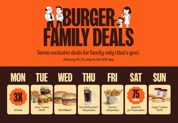 The deals are available exclusively through the A&W mobile app. Users simply need to download the app, create an account and check the offers section each day to unlock that day’s special.