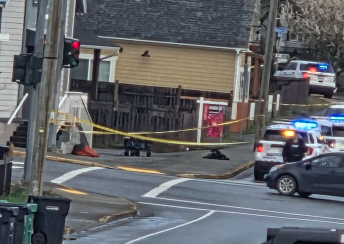 Police say the intersection and surrounding streets were closed to both vehicle and pedestrian traffic while investigators assess the scene and gather evidence.