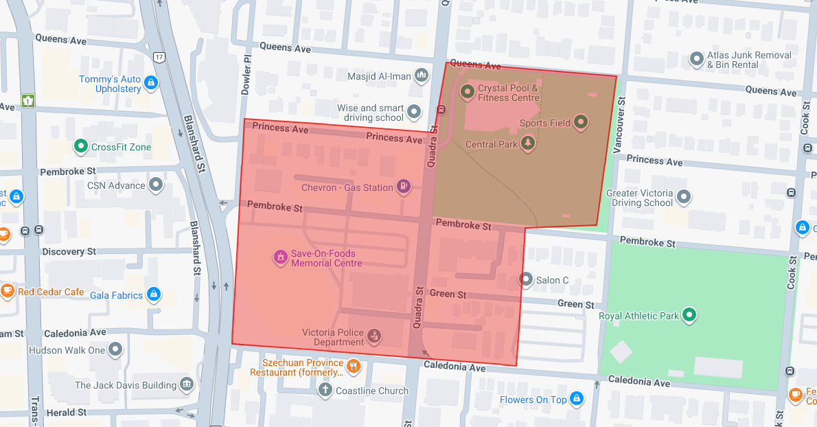 The City of Victoria has issued a shelter-in-place order for the area surrounding Crystal Pool as crews continue to respond to the hazardous materials incident.